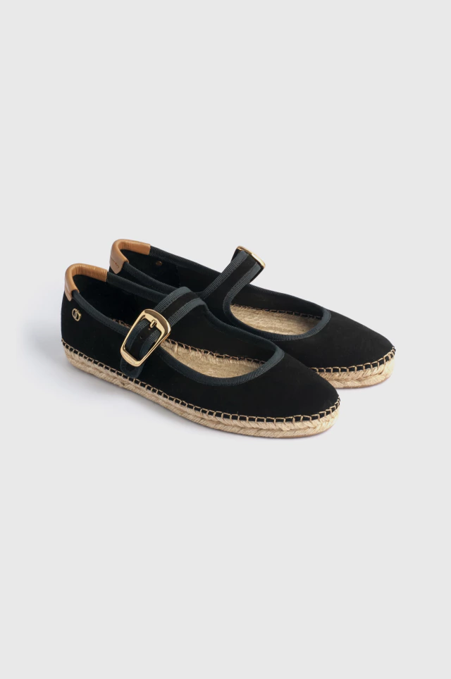 Mary Jane tipo espadrille confeccionada en suave cuero gamuzado con vivo en gross, forrada en cuero para mayor confort. La suela de yute con base de goma antideslizante aporta un look natural y a la vez urbano.