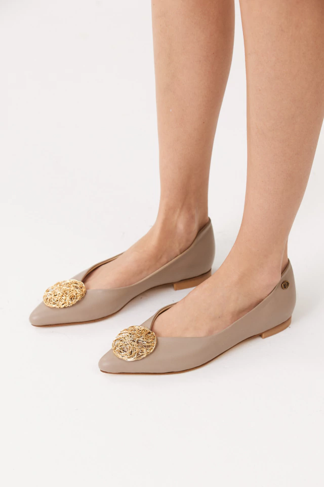 DESCRIPTION: Grey leather ballerinas. Leather lined. 100% Genuine Leather.