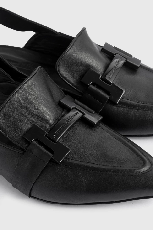 Minimalism, comfort, and character combine in the Cler Black, a mule style that redefines urban footwear with an elegant and modern profile. Its pointed toe design stylizes the foot, and its matte hardware with the brand logo gives it a subtle and sophisticated identity.